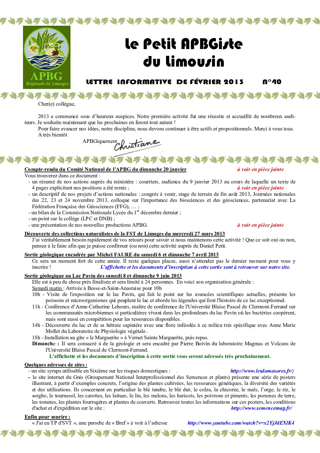 Read MoreLe dernier petit APBGiste du limousin est en ligne, bonne lecture. 2014 – 02 – Lettre du Petit APBGiste Février