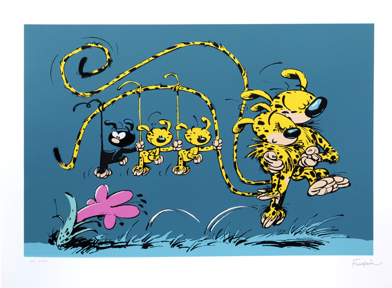 Un petit devoir de vacances : Sachant que l’allèle « noir » du gène codant pour la couleur des marsupilamis est récessif, en déduire le génotype (avec certitude ou probabilité) des différents membres de cette petite famille.