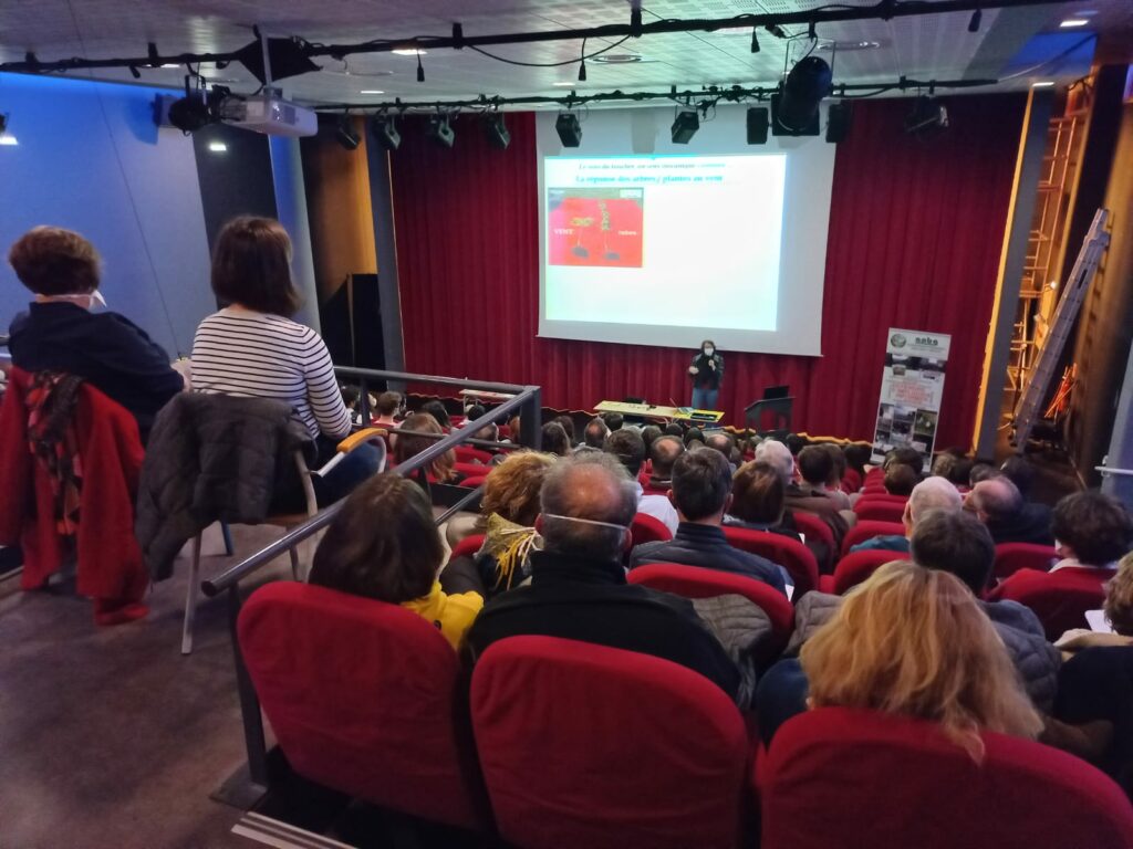 Dans l’amphithéâtre comble du lycée Léonard Limosin, 140 participants de tous horizons se sont glissés le temps d’une soirée dans la peau d’un arbre et ont découvert la vie passionnante du monde végétal, ou comment « voir », « sentir », « toucher » sans organes des sens ni système nerveux. L’occasion pour Catherine Lenne de faire le point sur le sens des termes employés dans ce domaine (qu’est-ce que la sensibilité, la communication, l’interaction ?) et d’inviter à une très enrichissante réflexion sur les constats réalisés dans les études sur le sujet et sur leurs applications, en rappelant l’importance de l’esprit critique dans l’analyse des différentes observations.