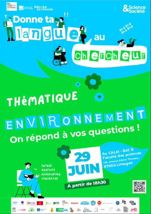 Cette soirée portera sur la thématique qui a reçu le plus de questions : l’environnement. Ce sera l’occasion pour les chercheurs et partenaires de répondre en 2 minutes aux questions posées par la société lors de l’appel à participation de mai. Elle sera suivi d’un cocktail qui permettra d’échanger avec les chercheurs.