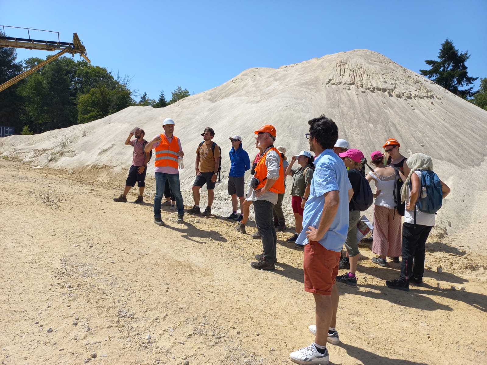 Après un agréable pique-nique au bord de l’eau, les participants ont courageusement affronté le soleil (un peu trop) radieux qui brillait au-dessus de la carrière de sable des Séguines pour découvrir les étapes de l’extraction et du nettoyage du sable, présentées par Mr Leprovaux, directeur du site, ainsi que les caractéristiques des hirondelles de rivage qui nichent sur les fronts de taille de la carrière, exposées par Mr Millon et Mr Labidoire, bénévoles passionnés et passionnants de la LPO du Limousin.