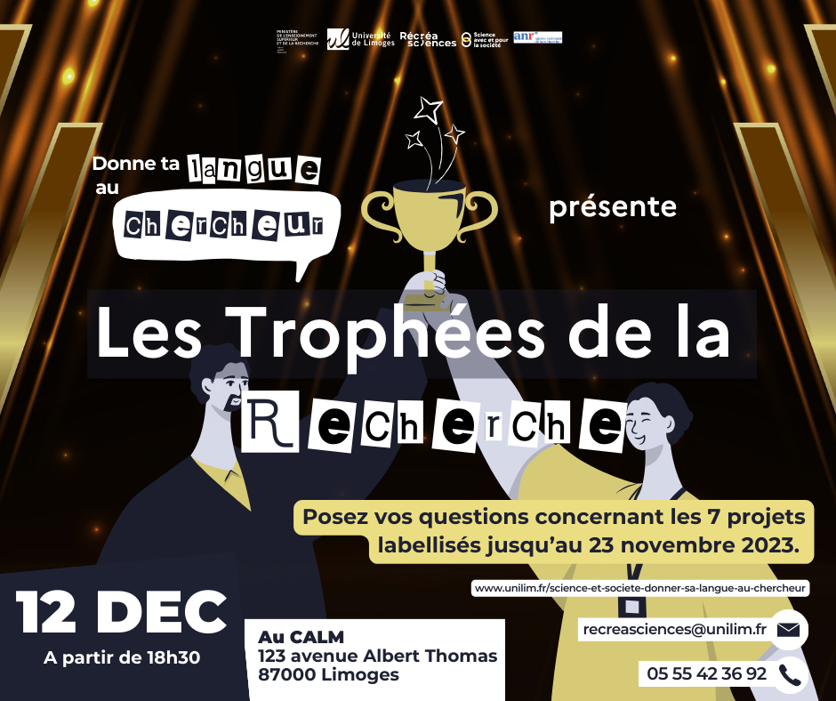 Mais cette fois-ci, Donne ta langue au chercheur revêt ses habits de lumière pour vous présenter une édition spéciale Les Trophées de la Recherche sur la thématique des projets ANR (Agence nationale de la recherche) en cours, débutés en 2020 et portés par l’Université de Limoges.