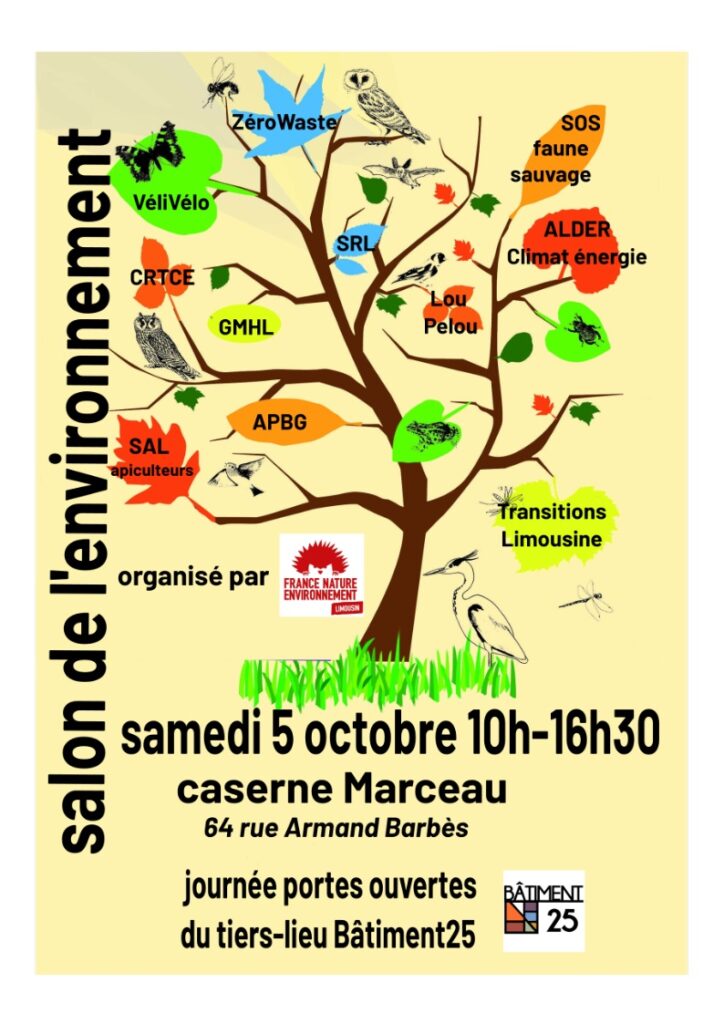 Dans le cadre de l’inauguration du tiers-lieu Marceau à Limoges, la Régionale APBG de Limoges participe en compagnie de nombreuses autres associations, au Salon de l’environnement qui s’est déroulé le long du bâtiment du tiers lieu le samedi 5 octobre entre 10h et 16h30