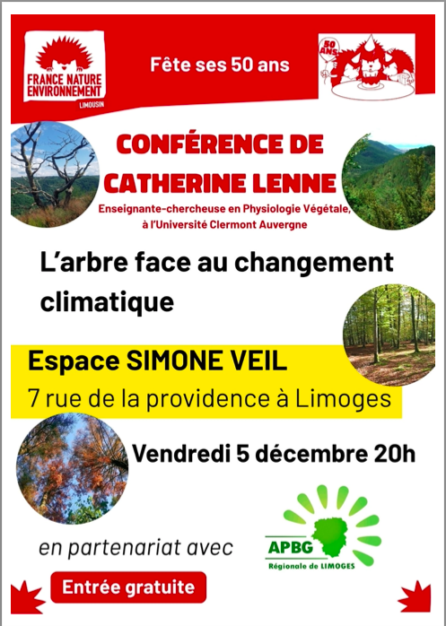 Cette conférence se déroulera le vendredi 5 décembre 2025, à l’espace Simone VEIL de Limoges, à 20h, intitulée. Catherine Lenne (Linkedin, quelques ouvrages sur babelio) est Docteur en Physiologie végétale et maître de conférences à l’Université Clermont Auvergne de Clermont-Ferrand.