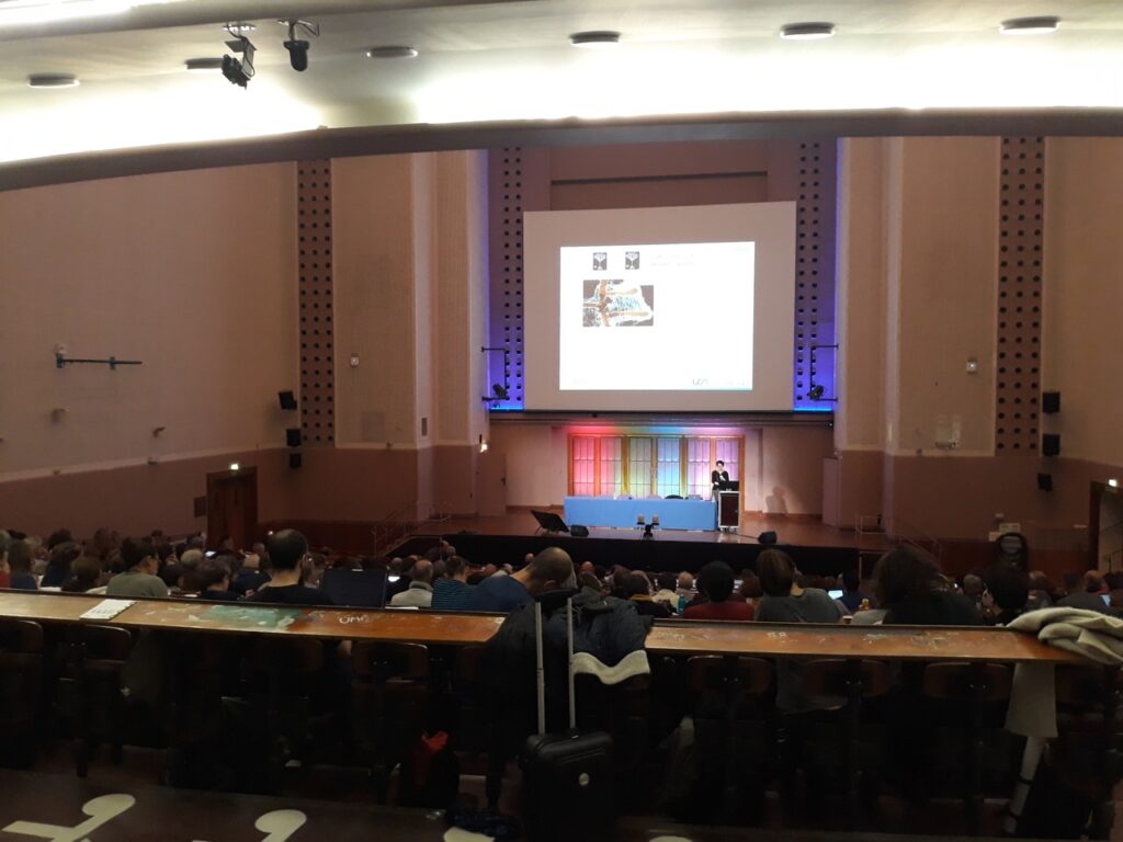 un amphithéâtre bien rempli avec une forte proportion de jeunes collègues